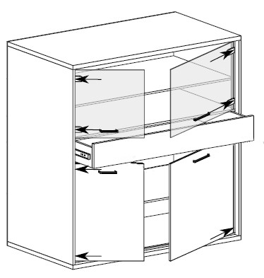 - Korpus i front - płyta laminowana strukturalna o grubości 16 mm (wyczuwalna i widoczna faktura drewna)