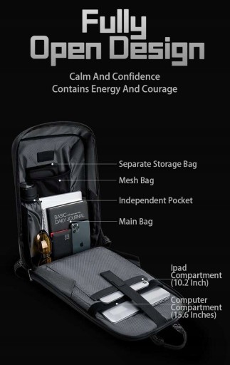 Plecak wyposażony jest w system antykradzieżowy. Głowna komora, w której przenoszony będzie laptop, może zostać zabezpieczona przed otwarciem, za pomocą kłódki wyposażonej w trzycyfrowy cyfr.