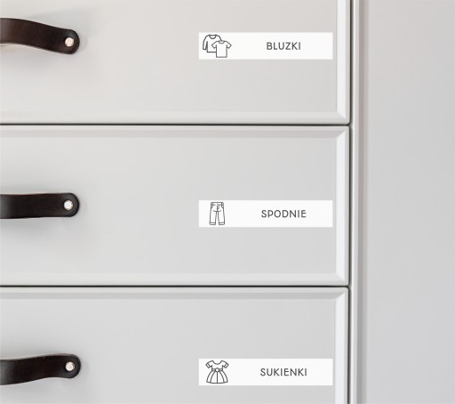 Dzięki temu, można w prosty sposób zorganizować nawet najmniejsze przestrzenie, a wszystkie rzeczy będą na swoim miejscu. Mały rozmiar naklejek sprawia, że są one wszechstronne i idealnie nadają się do każdego rodzaju szafy czy komody.