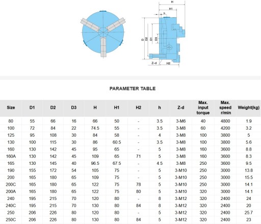 - Uniwersalny uchwyt samocentrujący 3-szczękowy przeznaczony do mocowania na tokarkach, stołach obrotowych, frezarkach