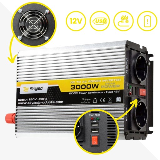 PRZETWORNICA SKYLED 1500W CIĄGŁA / 3000W CHWILOWA, SINUSOIDA MODYFIKOWANA 12V 230V