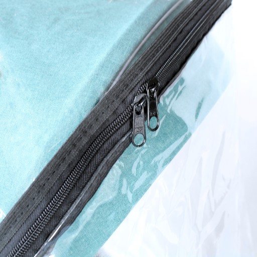 - otwierana na całej szerokości na przy pomocy 2 zamków błyskawicznych - bardzo łatwo można dostać się do maluszka (lub wyjąć go z wózka) bez potrzeby zdejmowania folii