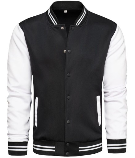 Bluza bejsbolówka to ciekawa męska bluza, która uzupełni wiele ciekawych stylizacji. Bluza jest zapinana na napy. Na dole i na rękawach zakończona dresowym ściągaczem, pod szyją charakterystyczny dla bejsbolówki kołnierzyk. Bluza może również służyć jako lekka kurtka na wiosenne lub letnie dni. Po bokach wsuwane kieszenie. Skład materiału bejsbolówki to 100% poliester.