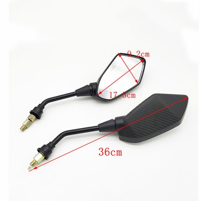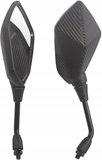Czarne matowe+CARBON uniwersalne lusterka o oryginalnym kształcie. Mocowane są na metalowym uchwycie o średnicy gwintu 8mm. Posiadają również estetyczną gumową osłonę na mocowanie. Wyposażone są w otwory umożliwiające odprowadzanie wody