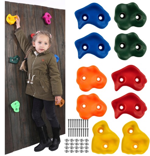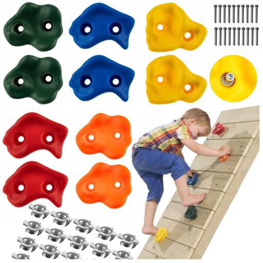 Uchwyty kamieni do wspinaczki dla dzieci zostały wykonane z bezpiecznych i trwałych materiałów, co zapewnia ich stabilność i bezpieczeństwo podczas użytkowania. Chropowata powierzchnia zapobiega ślizganiu. Każdy uchwyt posiada solidny zestaw montażowy, co zapewnia pewność i stabilność podczas wspinaczki dzieci.