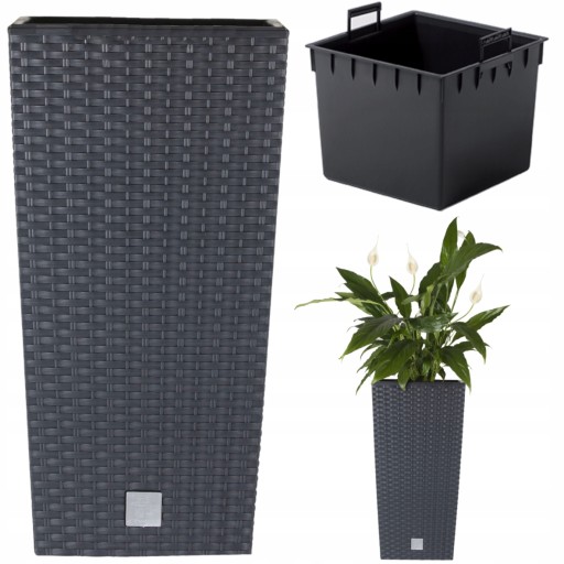 Wysoka doniczka Rato Square o fakturze wiernie imitującej plecionkę z naturalnego rattanu, w klasycznej, czystej formie, pozwala kreować piękne unikatowe wnętrza i bez ograniczeń aranżować przestrzeń wokół domu, godząc różne style i upodobania. Jej funkcjonalność wyraża się również w komforcie użytkowania bez względu na aurę.