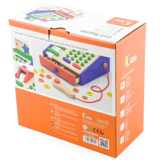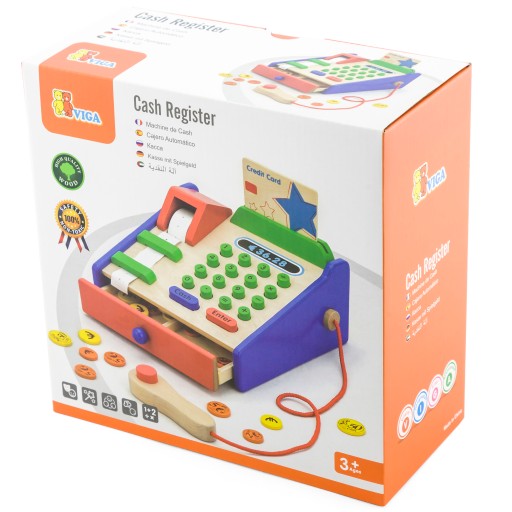 Kasa sklepowa marki Viga to świetna drewniana zabawka, która pozwoli na odegranie wielu scenek, jakie mogą mieć miejsce w sklepie. Dzieci mogą wcielić się w role kasjera, lub klienta, oraz wspólnie ćwiczyć interakcje społeczne, oraz swoje zdolności komunikacyjne. Gotówka, czy karta? Policz sumę należności, przyjmij pieniądze i wydaj poprawnie resztę. Kasa zawiera 40 monety,kartę płatniczą, skaner na sznurku oraz rolkę taśmy do "drukowania"paragonów. Dziecko może uczyć się bawiąc zgodnie z nurtem Montessori! Królowa Nauk - matematyka nie będzie już straszna.