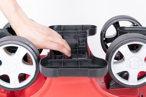 ✔️ Duże, stabilne koła o średnicy 15cm z gumową oponą, dzięki którym pojazd cicho porusza się po każdej nawierzchni. Domowym podłogom nie grozi zniszczenie.