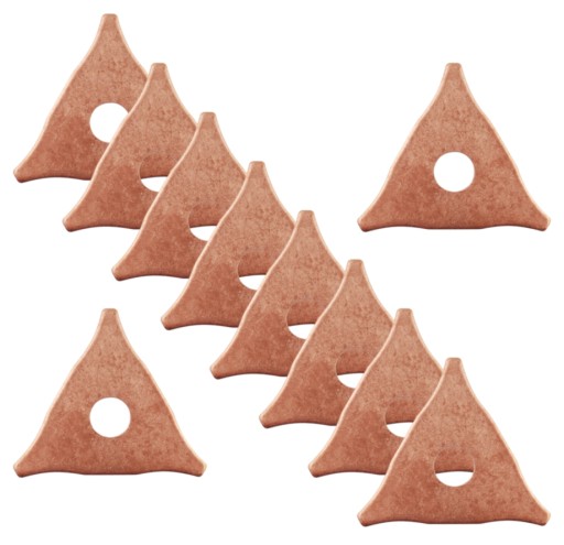 ☑️ Trójkąty wyposażone w powłokę miedziowaną cechują się specjalnym składem chemicznym pozwalającym na łatwe przygrzanie do karoserii. Skutkiem tego jest brak opalania blachy od wewnętrznej strony oraz dookoła zgrzewu.