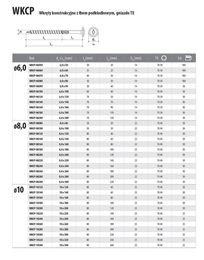 - Wkręty zostały wykonane zgodnie z wymogami normy PN-EN 14592:2008+A1:2012 co poświadcza Deklaracja Właściwości Użytkowych