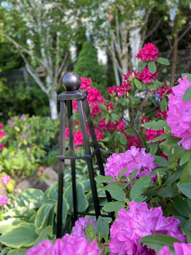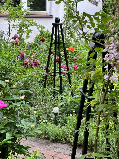 Trejaż w kształcie obelisku jest ELEGANCKIM elementem małej architektury ogrodowej.
