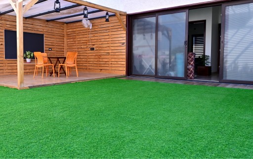 Pamiętaj, aby w przypadku instalacji trawy na zewnątrz zabezpieczyć ją przed mocnymi podmuchami wiatru poprzez odpowiednie dociążenie, np. meble ogrodowe, lub poprzez zastosowanie taśmy łączącej również na obrzeżach trawy.