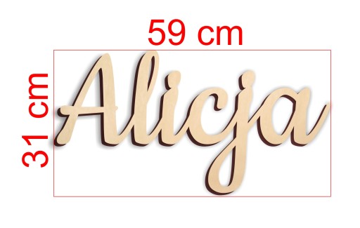 - Wymiary: ok 59 x 17-32 cm w zależności od imienia
