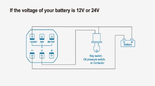 Zakres mierzonych napięć od 12V do 72V.