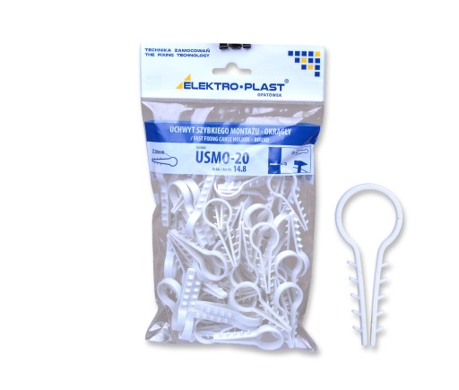Uchwyty montażowe USMO firmy Elektro-Plast przystosowane są do montowania przewodów elektrycznych płaskich, telekomunikacyjnych, sterowniczych oraz rurek instalacyjnych do różnych powierzchni. Zastosowanie uchwytów montażowych do przewodów gwarantuje min. bardzo szybki montaż, pewność mocowania, profesjonalny wygląd instalacji, Wykonane z polipropylenu uchwyty stosowane są zazwyczaj do mocowania przewodów do ścian lub podłóg. Szczególnie często wykorzystywane jako uchwyt przytrzymujący przewód na ścianie podczas nakładania tynków, płyt gipsowych lub podczas wykonywania wylewek, podłóg itp.
