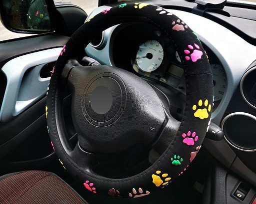 Pokrowiec na kierownicę wzór ŁAPKI, wykonany z wysokiej jakości materiałów (zamsz antypoślizgowy)