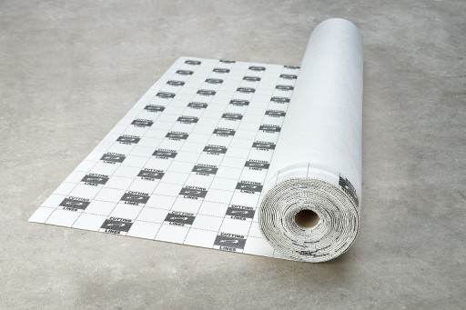 ✅ 3 w 1 – podkład ze zintegrowana bariera paroizolacyjna Aquastop i taśma