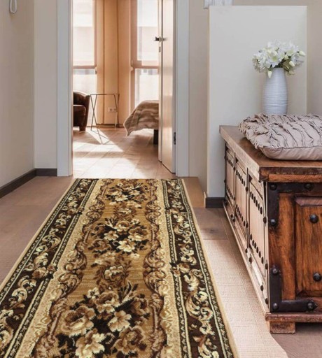 SKANDYNAWSKI CHODNIK DYWANOWY 90 cm BRĄZ - KWIATY