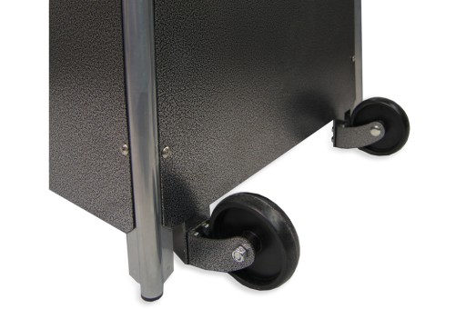 Mimo dużej wagi i dużych rozmiarów, promiennik bez problemu można przetransportować. Dołączone do zestawu kółka w znacznym stopniu ułatwiają przemieszczanie go z miejsca na miejsca.