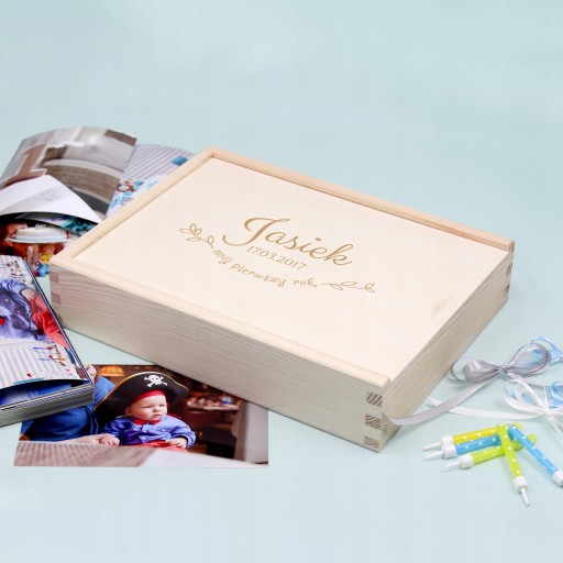 Pierwszy rok w życiu każdego człowieka jest niezmiernie ważny. Pierwsze ząbki, pierwsze kroki i pierwsze słowa – tyle nowości! Wszystkie te momenty zasługują na uwiecznienie, więc pierwszy rok to również setki zdjęć. Pojemne dedykowane pudełko z drewna sosnowego to idealny pomysł na przechowywanie tych wspomnień. Podaruj je młodym rodzicom, a żadna ważna chwila im nie umknie.