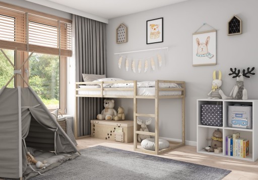 BEZPIECZEŃSTWO - do produkcji łóżka używamy bezwonnych lakierów wodnych bezpiecznych dla dzieci i alergików, starannie wykonane elementy posiadają zaokrąglone krawędzie.