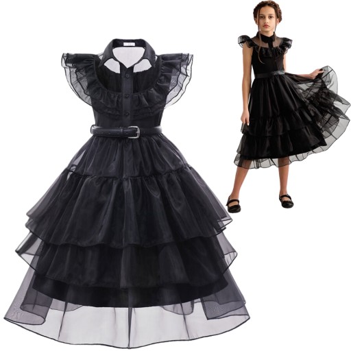 STRÓJ KOSTIUM SUKIENKA WEDNESDAY ADDAMS COSPLAY HALLOWEEN KARNAWAŁ 158