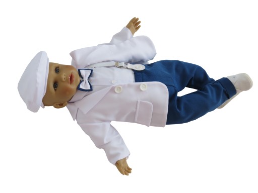 - MARYNARKA BIAŁA- USZYTA Z TKANINY GARNITUROWEJ. ZAPINANA NA GUZICZKI, PODSZYTA PODSZEWKĄ.