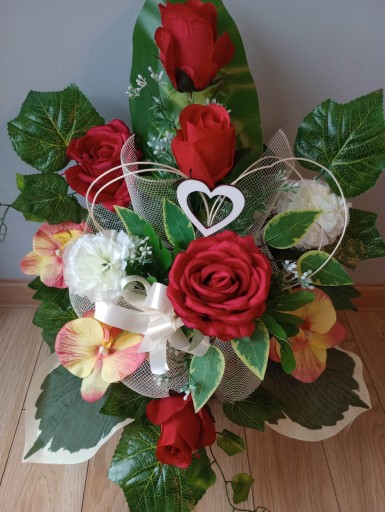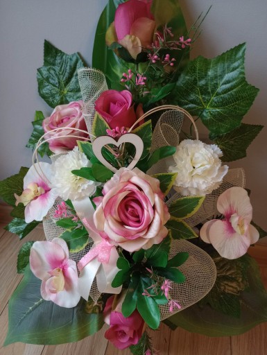 (cena dotyczy TYLKO bukietu do wazonu, natomiast kompozycja do postawienia na grobie dostępna na innej aukcji)