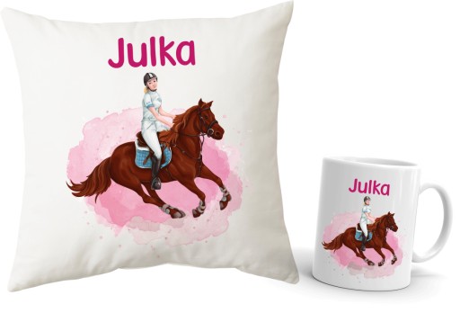 Zestaw z motywem KONIA: KUBEK + PODUSZKA z wypełnieniem i imieniem