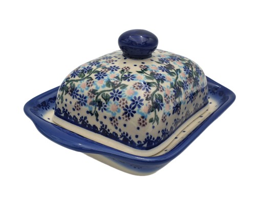 MASELNICA MALOWANA W TRADYCYJNEJ DEKORACJI BOLESŁAWIECKIEJ WIELKOŚĆ KOSTKI MASŁA .KOD ZDOBIENIA -111