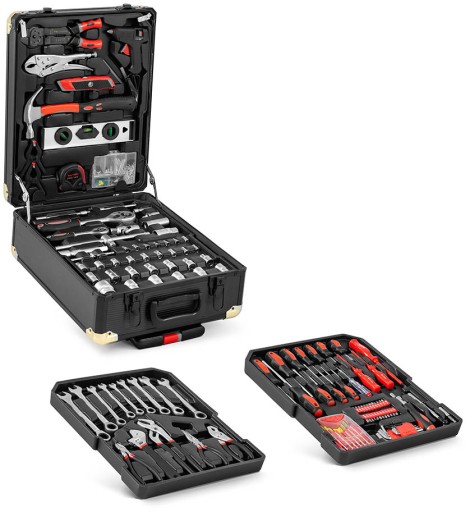 Zestaw narzędzi marki MSW sprawdzi się w profesjonalnym i hobbystycznym warsztacie. Duży komplet składa się z 362 wysokiej jakości narzędzi, przeznaczonych do codziennego użytku. Są wśród nich śrubokręty, bity, klucze płasko-oczkowe w różnych rozmiarach oraz szeroka gama śrub i nakrętek. Szczypce, nylonowe zaciski i ciśnieniomierz będą przydatne do wielu zadań. Komplet obejmuje także poziomicę aluminiową, młotek, taśmę mierniczą, nóż, próbnik napięcia czy śrubokręty precyzyjne. Walizka narzędziowa na kółkach jest bardzo wytrzymała i bezpiecznie utrzymuje cały zestaw. Narzędzia poukładane są w niej zgodnie z przeznaczeniem. Wysuwany uchwyt pozwala na wygodny transport.