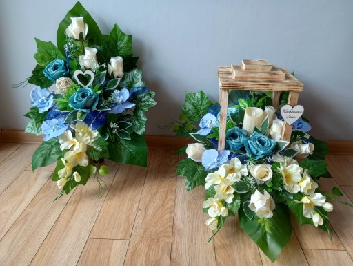 Latarnia WKŁAD LED Kwiaty grób KOMPOZYCJA wiązanka