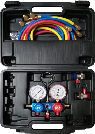 - Manometry posiadają przyłącza typowe do klimatyzacji na czynnik r134a. Jednak dzięki zegarom ze skalą na R134a, R1234YF, R32, R410a po zastosowaniu odpowiednich adapterów można je stosować również do nowego czynnika 1234YF, klimatyzacji stacjonarnej R32 oraz chłodnictwa R410a.