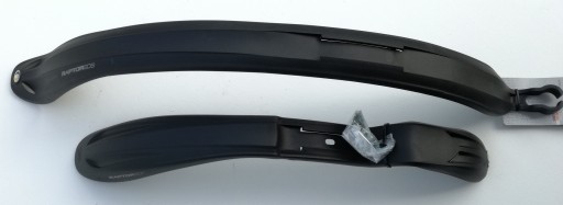 Zestaw wyjątkowo lekkich błotników o oryginalnej, motocrossowej optyce, zaprojektowany specjalnie dla nowej generacji rowerów z amortyzowanymi widelcami.