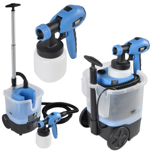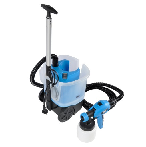 Elektryczny agregat malarski z systemem HVLP to wysoka wydajność malowania przy niskim ciśnieniu powietrza.