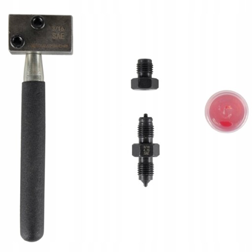Przyrząd umożliwia zarabianie końcówek przewodów hamulcowych, hydraulicznych miedzianych, miedziano-niklowych oraz cienkościennych przewodów stalowych.