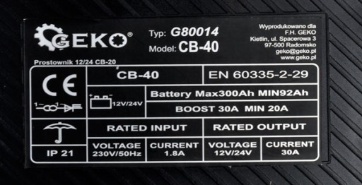 Prostowniki serii CB mogą służyć do ładowania i wspomagania rozruchu akumulatorów 12V lub 24V.