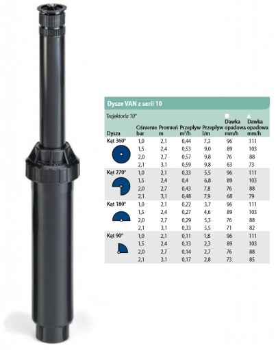 - zraszacz z zamontowaną dyszą VAN 10-niebieską