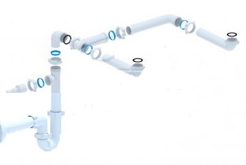 - syfon rurowy podwójny z odejściem na pralkę/zmywarkę