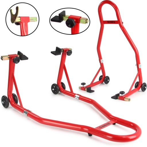 Uniwersalne dwa stojaki przód i tył z 3 końcówkami co pozwala na podniesienie motocykla z przodu i z tyłu.