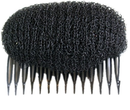 Umocuj grzebień wsuwając go we włosy tak, by powstał możliwie ścisły kok. Delikatnie rozłóż włosy na całej długości wypełniacza, aby szczelnie go przykryły. Podepnij wsuwkami. Wypełniacz wykonany jest z wysokiej jakości siatki. Wygodny i lekki kształt powoduje, że zapomnisz, że masz go na głowie.