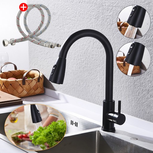 【Wysuwany nowoczesny kran】 Wyciągnij kran zlewu kuchennego z szerokim, efektywnym na profesjonalnym nylonowym wężem, dzięki czemu ludzie mogą korzystać z kranu kuchennego.