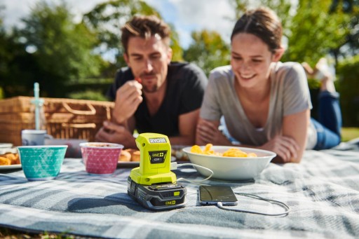 Adapter USB R18USB-0 Ryobi umożliwia ładowanie urządzeń mobilnych. Posiada dwa gniazda USB 2,1A i 1,0A. Adapter jest zasilany akumulatorem litowo-jonowym 18V ONE+, dzięki czemu stanowi praktyczne uzupełnienie elektronarzędzi i innych urządzeń z systemu ONE+. Ładowarka USB przyda się w podróży, na biwaku czy podczas prac w warsztacie. Dzięki niej szybko i wygodnie naładujemy swój telefon czy inne mobilne urządzenie.