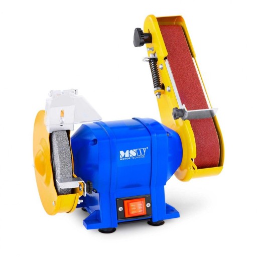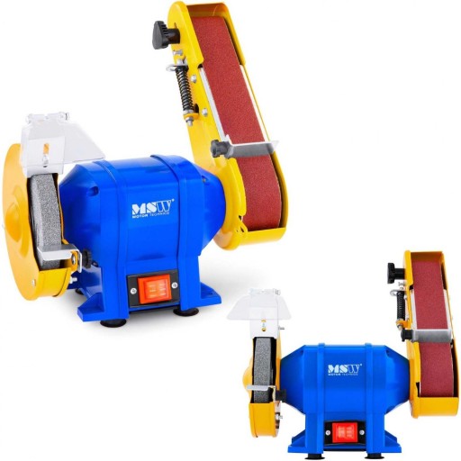 Praktyczna szlifierka taśmowo-tarczowaMSW dzięki swojej konstrukcji pozwoli na dwa sposoby szlifowania na jednej maszynie. Kamienna ściernica (śr. 150 mm, ziarnistość 36) i taśma szlifierska (szer. 50 mm, ziarnistość 80) znajdą zastosowanie przy polerowaniu, ostrzeniu czy przecinaniu różnych materiałów. Ściernicę i pas można samodzielnie zdemontować i wymienić na inne o tych samych wymiarach.