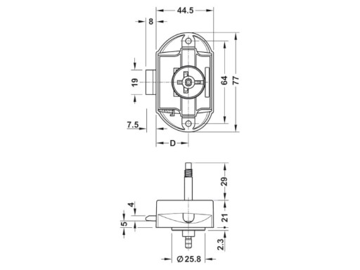Zamek dwustronny do drzwi, idealnie nadający się do przyczepy kempingowej lub kampera. Obsługa jedną ręką np. drzwi łazienkowych. Gdy przycisk jest wciśnięty, drzwi są zamknięte. Po wciśnięciu, przycisk wyskakuje do przodu i służy jako uchwyt. Aby zamknąć zamek, ponownie musimy go wcisnąć. Zamek posiada dwa otwory na pręty 6mm!
