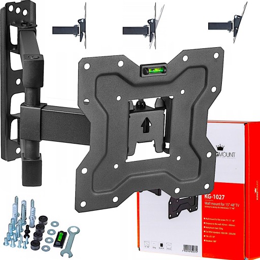- W zestawie uniwersalny komplet śrub montażowych do telewizora oraz komplet wkrętów i kołków do ściany, poziomica