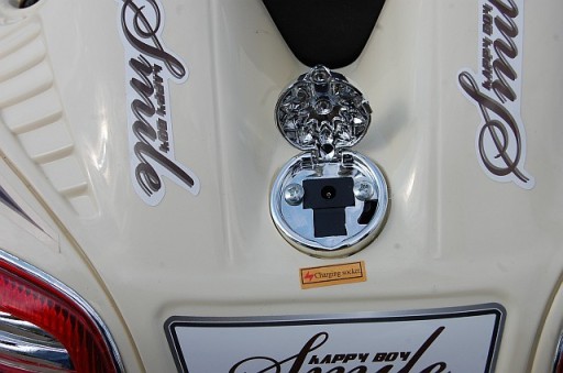 W miejscu imitującym wlew paliwa znajduje się gniazdo ładowania akumulatora.