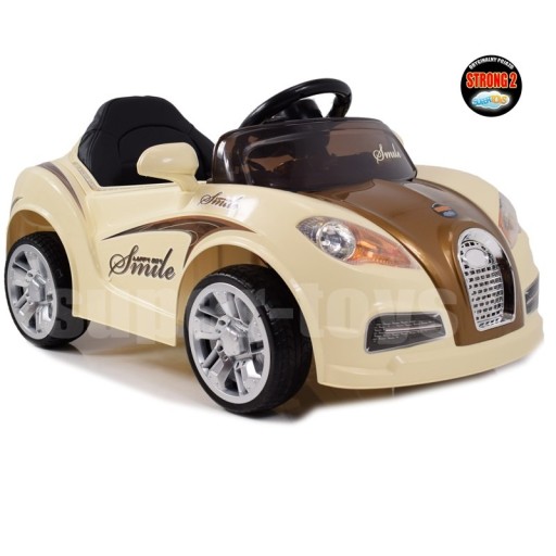 AUTO ROADSTER SMILE zasilane na 12 V z napędem na dwa koła oraz uruchamianie za pomocą kluczyka Dzięki zastosowanym najmocniejszym silnikom 45 W, auto jeździ po nierównym terenie bez żadnych problemów, a dodatkowo silniki te są bardzo dobrej jakości. Atrakcją są amortyzowane miękkie koła dzięki właśnie nim młody kierowca może poczuć komfort jazdy