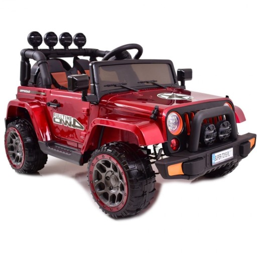 AUTO MEGA JEEP FULLTIME Z NAPĘDEM 4X4 z systemem ESW - system wolnego startu, hamulcem oraz z kołami EVA i miękkim siedzeniem zasilane na 12 V z napędem na cztery koła zachwyci nie jednego przyszłego kierowcę. Dzięki zastosowanym najmocniejszym silnikom 45 W, auto jeździ po nierównym terenie bez żadnych problemów - posiada olbrzymie miękkie koła EVA, Najciekawszą funkcją pojazdu jest SYSTEM WOLNEGO STARTU, oraz SYSTEM HAMOWANIA Z PILOTA Z FUNKCJĄ BLOKADY JAZDY MANUALNEJ
