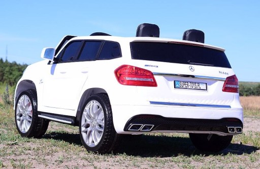 AUTO MERCEDES GLS 63w wersji z miękkimi koła EVA napęd 4X4zasilane na 2x 12 V z napędem na cztery koła zachwyci nie jednego przyszłego kierowcę. Dzięki zastosowanym najmocniejszym silnikom 35 W, auto jeździ po nierównym terenie bez żadnych problemów, a dodatkowo silniki te są bardzo dobrej jakości. Najciekawszą funkcją pojazdu są - AMORTYZATORY oraz napęd pojazdy na 4 koła.
